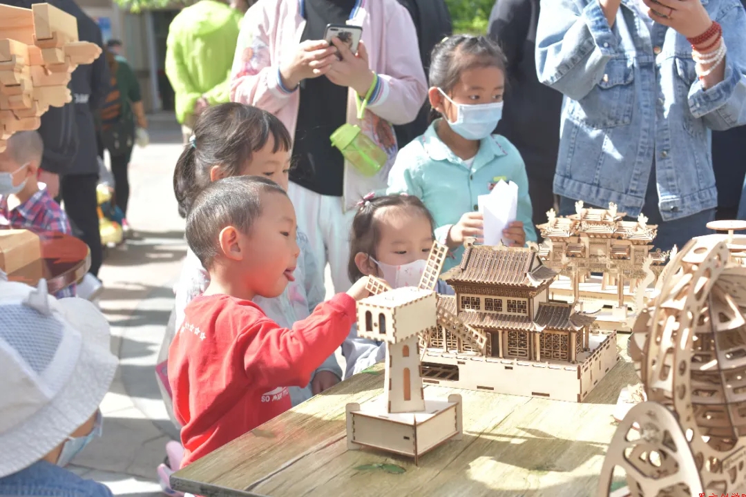好奇、想象和創(chuàng)造是孩子的天性,盡管露天活動(dòng)天氣較熱,卻依然阻擋不了小朋友們的求知熱情。活動(dòng)現(xiàn)場(chǎng)“斗拱營(yíng)造的科學(xué)和藝術(shù)”、“激光造物創(chuàng)意”、“開(kāi)源格斗機(jī)器人體驗(yàn)”,都吸引了孩子們的目光,迎來(lái)大批參觀者,充分激發(fā)小朋友們的好奇心和求知心。